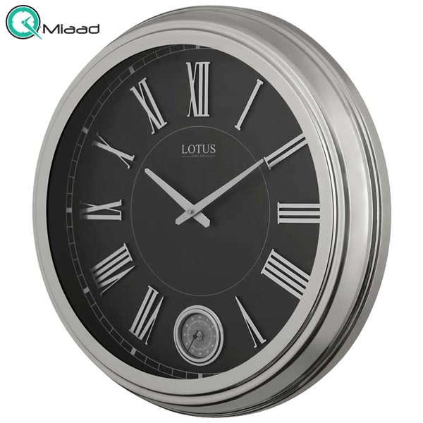 ساعت دیواری فلزی لوتوس، ساعت دیواری سایز 60 آبکاری شده به رنگ نقرهای، ساعت دیواری با اعداد برجسته و موتور تایوانی مدل 16023