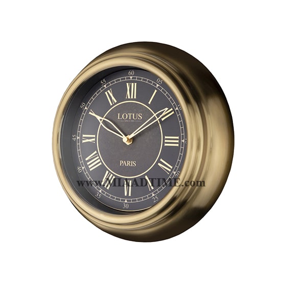 ساعت دیواری لوتوس فلزی طلایی زیتونی کد ALEX M-4003