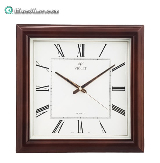 ساعت دیواری چوبی ویولت، ساعت دیواری کلاسیک مربع سایز 40 با موتور آرامگرد ژاپنی مناسب خانه و دفتر کار | مدل 19734