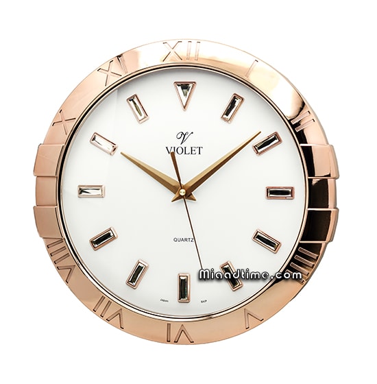 ساعت دیواری گرد ویولت نگین دار رنگ رزگلد مدل WS19727