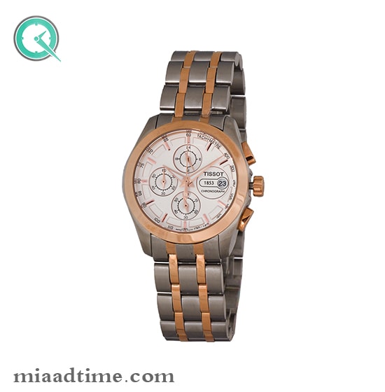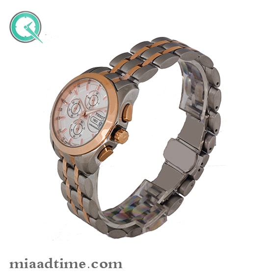 ساعت مچی تیسوت زنانه کرنوگراف دورنگ رزگلد صفحه سفید مدل T035627