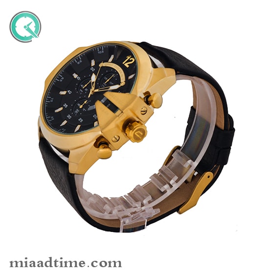 ساعت مچی دیزل مردانه کرنوگراف گرد چرمی طلایی صفحه مشکی مدل DZ-4309