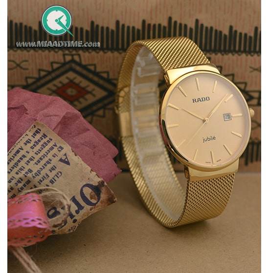 ساعت مچی رادو مردانه طلایی صفحه روشن بند حصیری مدل 25477