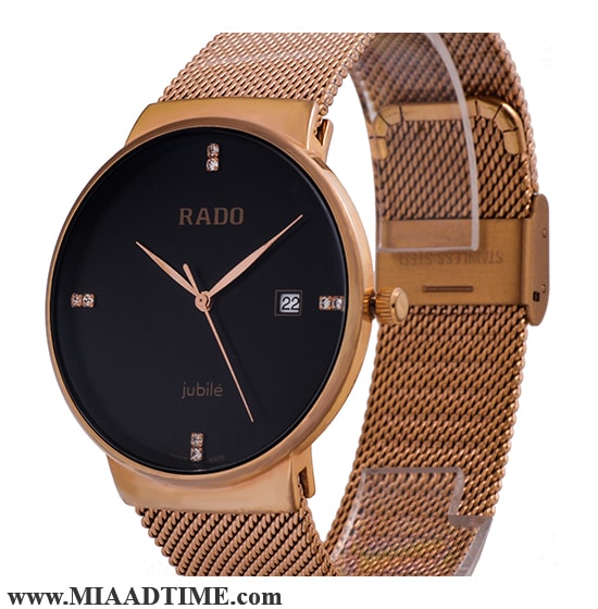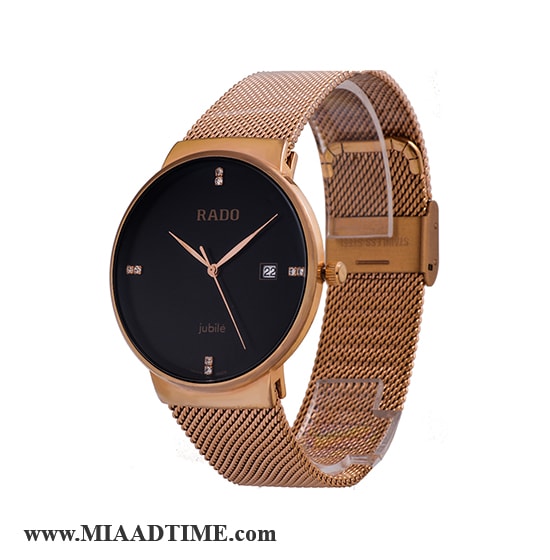 ساعت مچی رادو مردانه صفحه مشکی رزگلد بند حصیری کد 16361