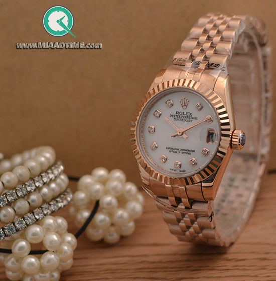 ساعت مچی رولکس زنانه، دیت جاست گرد رزگلد، صفحه سفید | کد 25509