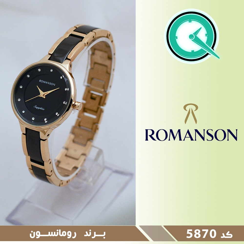 ساعت مچی رومانسون زنانه رزگلد فلزی سرامیکی صفحه مشکی کد 5870