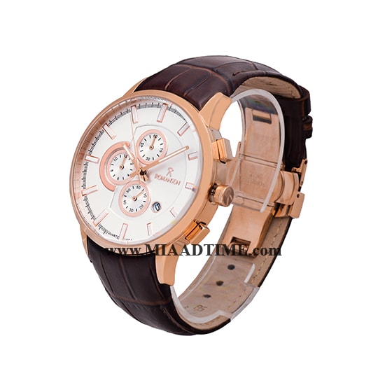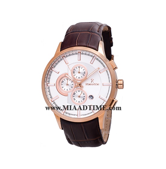 ساعت مچی رومانسون مردانه کرنوگراف گرد چرمی رزگلد صفحه سفید کد 16254