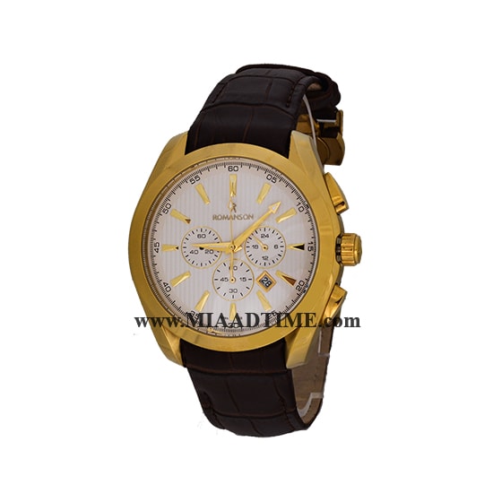 ساعت مچی رومانسون مردانه کرنوگراف گرد چرمی طلایی صفحه سفید کد 1871