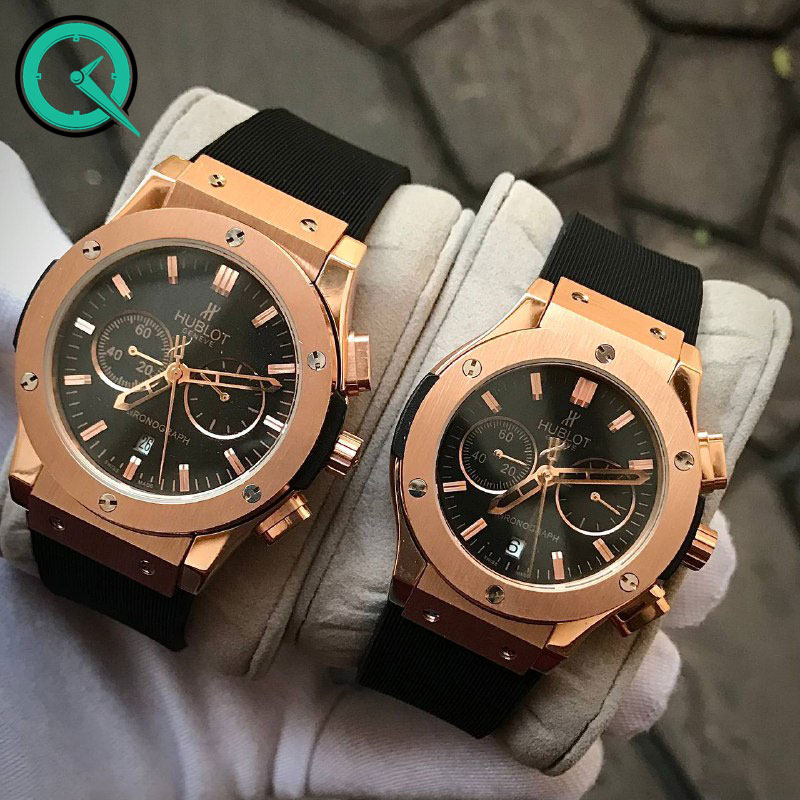 بهترین کیفیت موجود در بازار HIGH COPY +++A، سه موتور فعال دارای کرنومتر و ساعات شبانه روز، موتور کوارتز ساخت ژاپن با کیفیت عالی، بند جیر بسیار زیبا و مقاوم همراه با قفل اصلی, شیشه کریستالی مقاوم در برابر خش, مقاوم در برابر آب (در حد پاشش اب), قطر صفحه مردانه : 44 میلیمتر قطر صفحه زنانه : 40 میلیمتر, دارای جعبه چوبی شیک با مارک HUBLOT