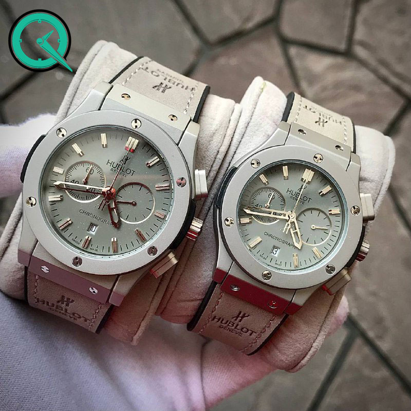 بهترین کیفیت موجود در بازار HIGH COPY +++A، سه موتور فعال دارای کرنومتر و ساعات شبانه روز، موتور کوارتز ساخت ژاپن با کیفیت عالی، بند جیر بسیار زیبا و مقاوم همراه با قفل اصلی, شیشه کریستالی مقاوم در برابر خش, مقاوم در برابر آب (در حد پاشش اب), قطر صفحه مردانه : 44 میلیمتر قطر صفحه زنانه : 40 میلیمتر, دارای جعبه چوبی شیک با مارک HUBLOT