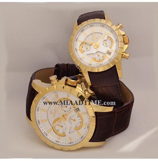 ساعت مچی ست ویولت گرد چرمی طلایی صفحه سفید مدل 0403/2