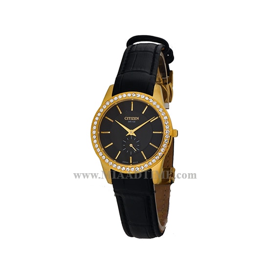ساعت مچی سیتیزن زنانه زیرثانیه گرد چرمی طلایی صفحه خاکستری مدل 6214L