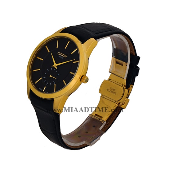 ساعت مچی سیتیزن مردانه زیرثانیه گرد چرمی طلایی صفحه خاکستری مدل 6214G