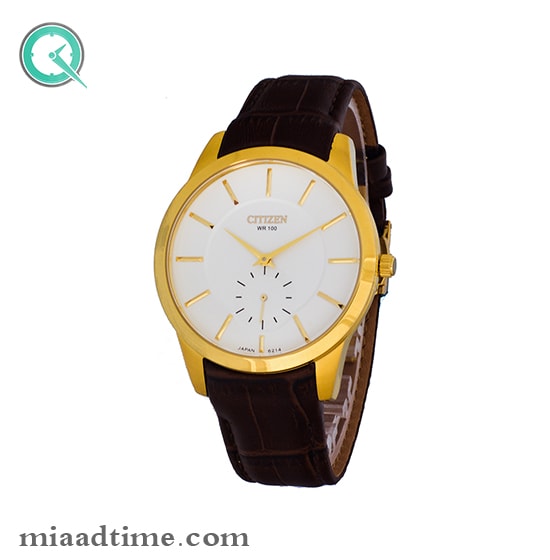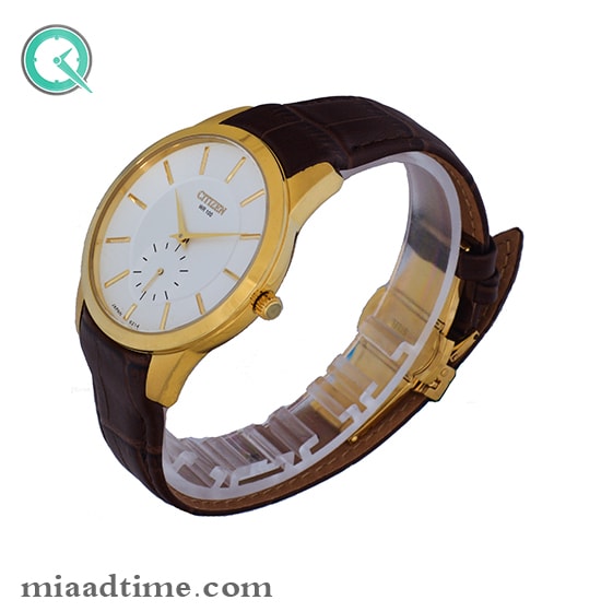 ساعت مچی سیتیزن مردانه زیرثانیه گرد چرمی طلایی صفحه سفید مدل 6214M
