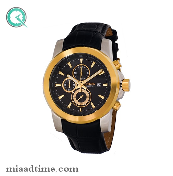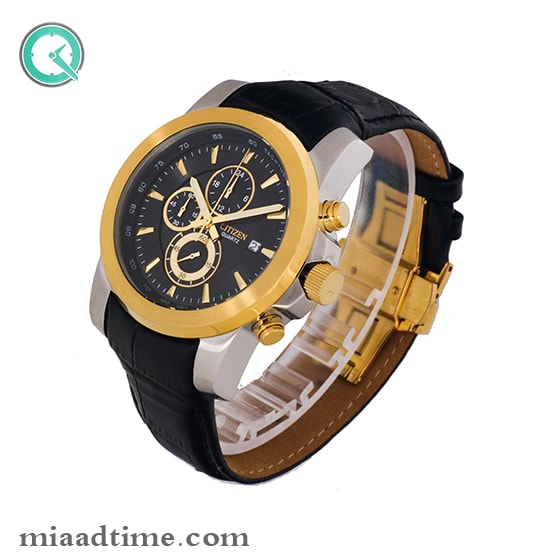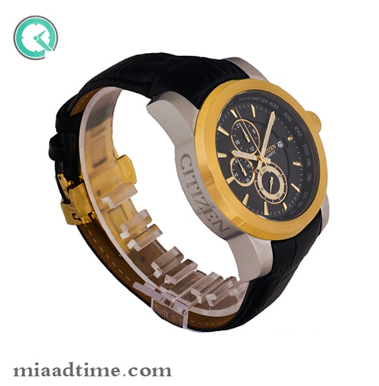 ساعت مچی سیتیزن مردانه کرنوگراف گرد چرمی دو رنگ صفحه مشکی مدل 832G