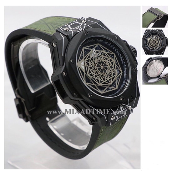 ساعت مچی هابلوت مردانه بند چرم مشکی صفحه مشکی کد 10999