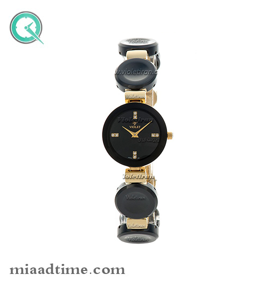 ساعت مچی ویولت زنانه سرامیکی گرد طلایی صفحه مشکی کد 0399/2L