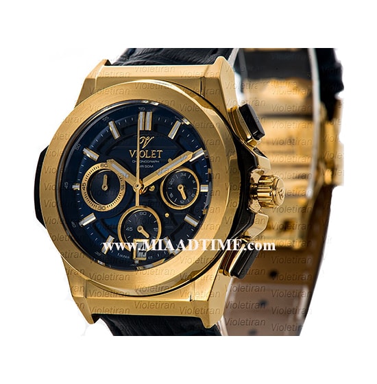 ساعت مچی ویولت زنانه کرنوگراف بند چرم طلایی صفحه سرمه ای مدل 0451/2L