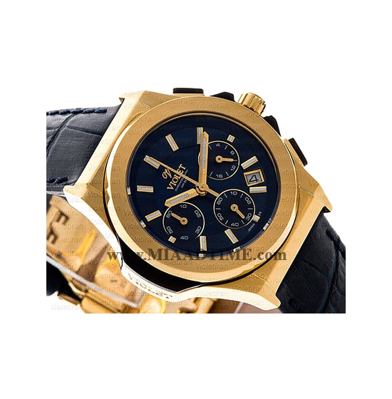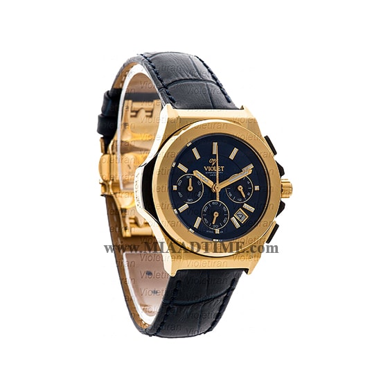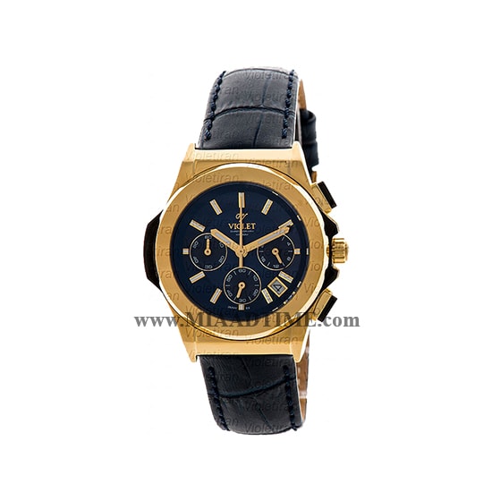 ساعت مچی ویولت زنانه کرنوگراف بند چرم طلایی صفحه سرمه ای مدل 0452/2L