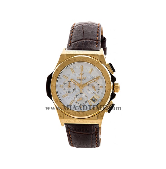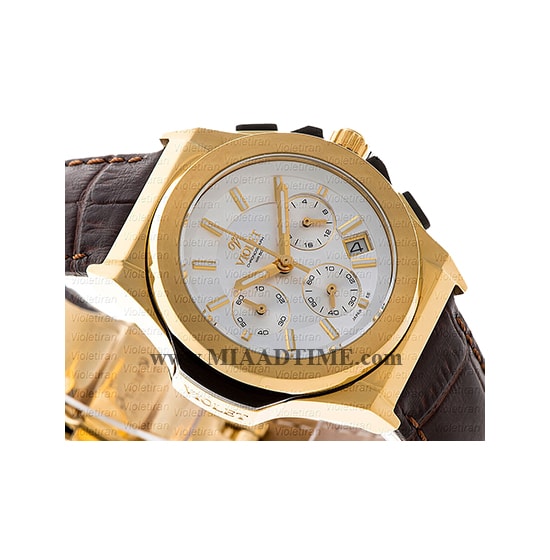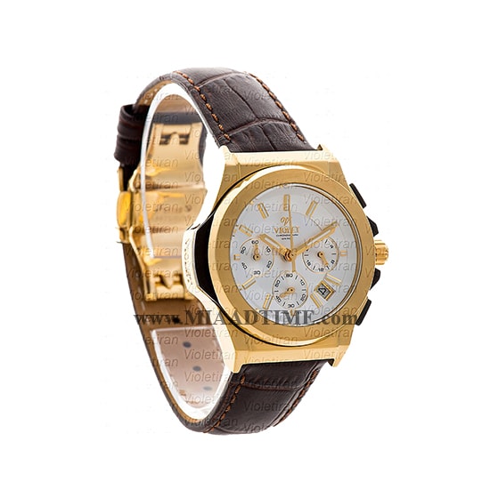 ساعت مچی ویولت زنانه کرنوگراف بند چرم طلایی صفحه سفید مدل 0452/2L