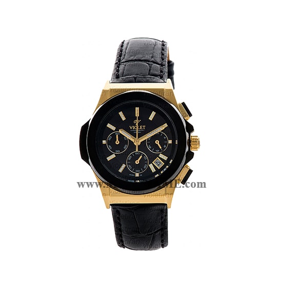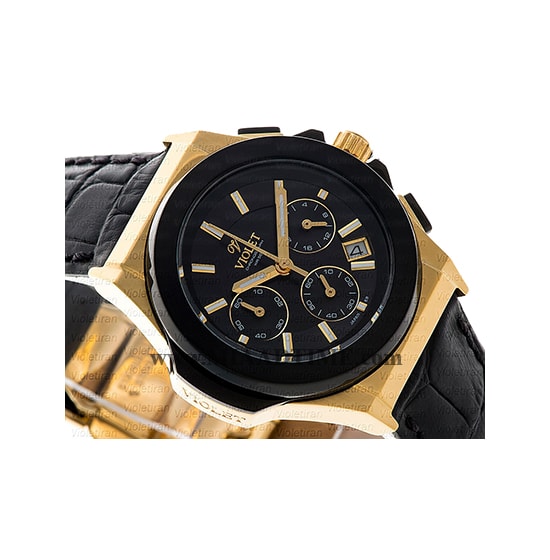 ساعت مچی ویولت زنانه کرنوگراف بند چرم طلایی مشکی صفحه مشکی مدل 0452/2L