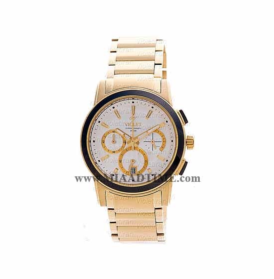 ساعت مچی ویولت زنانه کرنوگراف گرد فلزی، طلایی مشکی صفحه سفید مدل 0412/2G