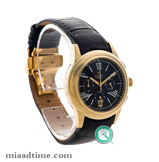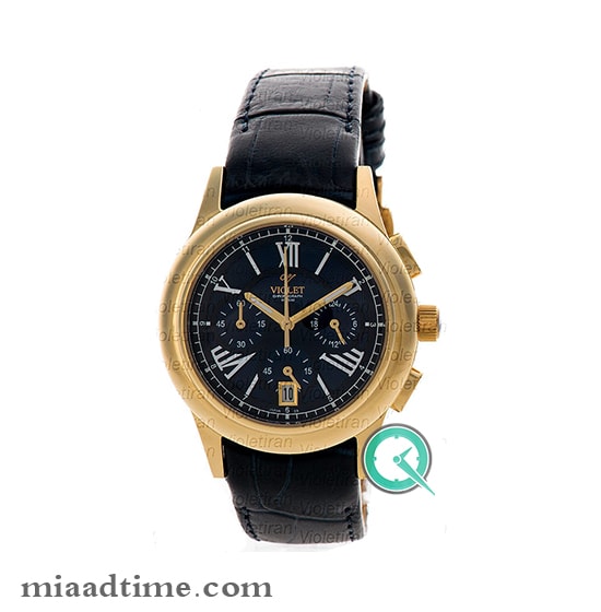 ساعت مچی ویولت، زنانه کرنوگراف، گرد چرمی، طلایی صفحه سرمه ای | کد 0401/2L