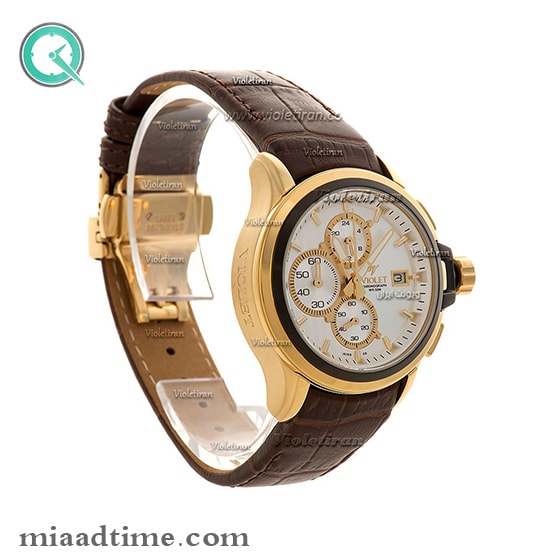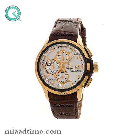 ساعت مچی ویولت زنانه کرنوگراف گرد چرمی طلایی صفحه سفید کد 0391/2L