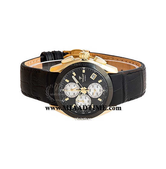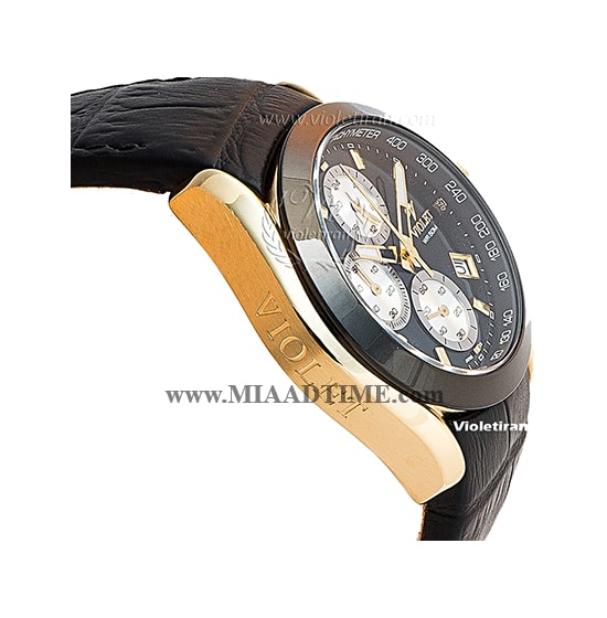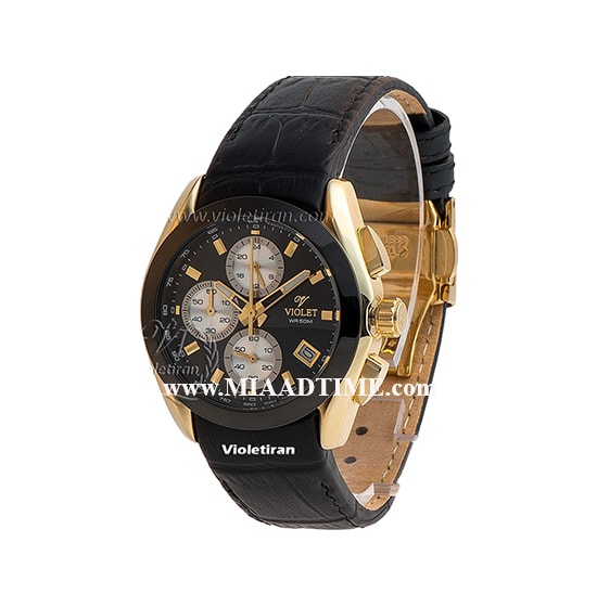 ساعت مچی ویولت زنانه کرنوگراف گرد چرمی طلایی مشکی صفحه مشکی مدل 0286/2L