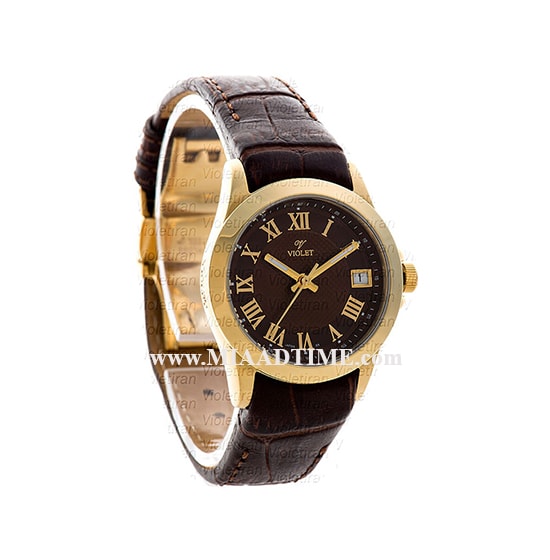 ساعت مچی ویولت زنانه کلاسیک بند چرم طلایی صفحه قهوه ای مدل 0460/2L