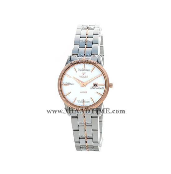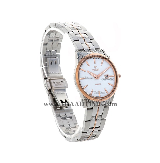 ساعت مچی ویولت زنانه کلاسیک گرد فلزی دو رنگ رزگلد صفحه سفید مدل 0421/2L