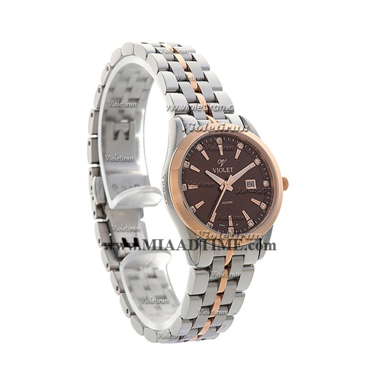 ساعت مچی ویولت زنانه کلاسیک گرد فلزی دو رنگ رزگلد صفحه قهوه ای مدل 0360/2L