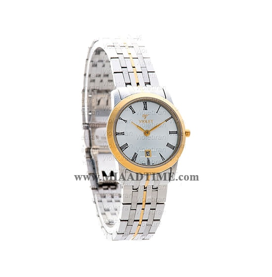 ساعت مچی ویولت زنانه کلاسیک گرد فلزی دو رنگ صفحه سفید کد 0416/2L