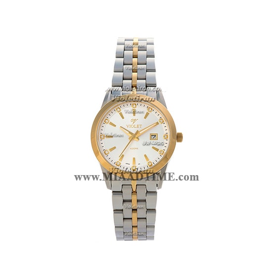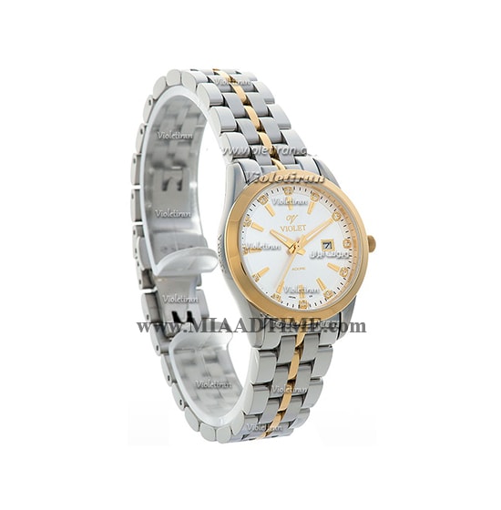 ساعت مچی ویولت زنانه کلاسیک گرد فلزی دو رنگ طلایی صفحه سفید مدل 0360/2L