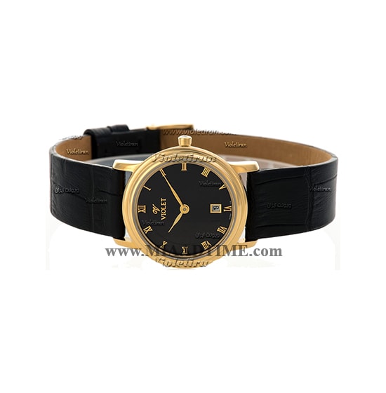 ساعت مچی ویولت زنانه کلاسیک گرد چرمی طلایی صفحه مشکی شماره یونانی کد 0418/2L