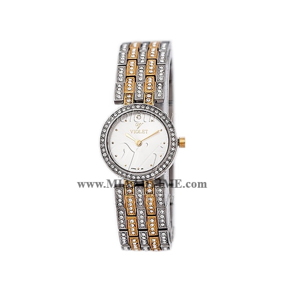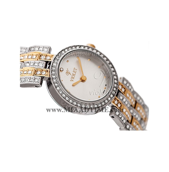 ساعت مچی ویولت زنانه گرد نگین دار دو رنگ مدل 12388/2