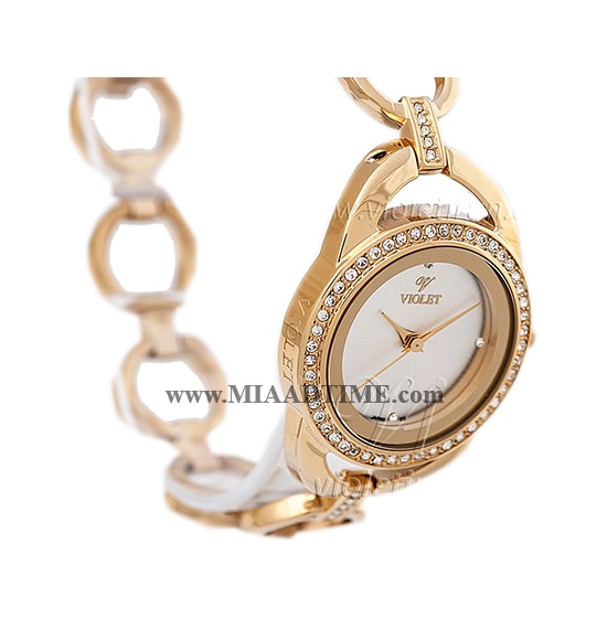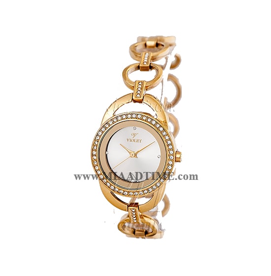 ساعت مچی ویولت زنانه گرد نگین دار طلایی مدل 12386/2