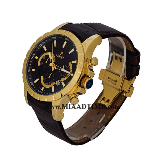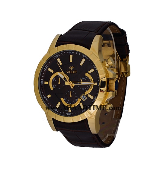 ساعت مچی ویولت، مردانه کرنوگراف، بند چرم، طلایی صفحه قهوه ای | کد 0403/2G