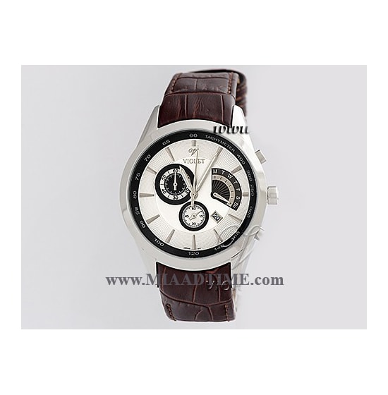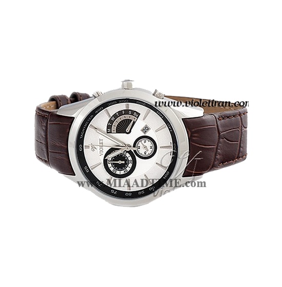 ساعت مچی ویولت مردانه کرنوگراف چرمی استیل صفحه سفید مدل 0212