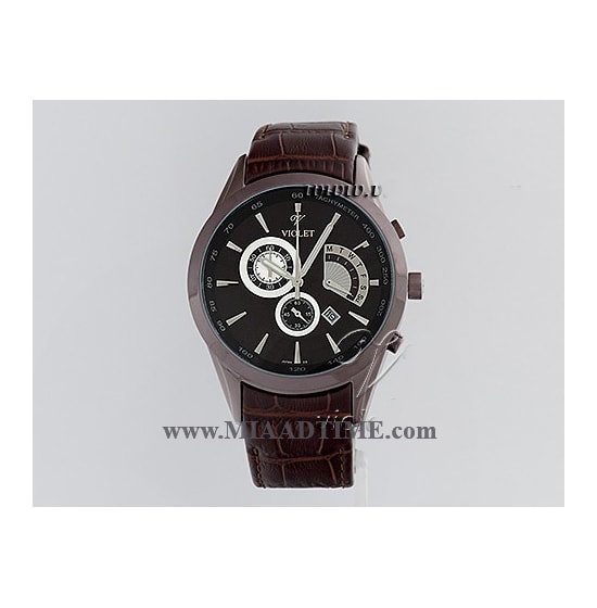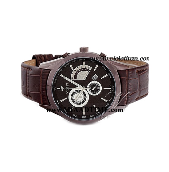 ساعت مچی ویولت مردانه کرنوگراف چرمی قهوه ای (کافی کالری) مدل 0212/2