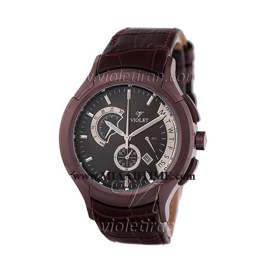 ساعت مچی ویولت مردانه کرنوگراف چرمی قهوه ای (کافی کالری) مدل 0251/2