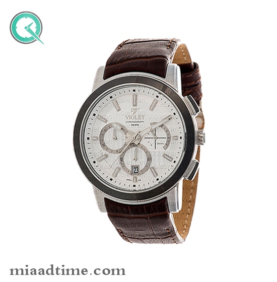 ساعت مچی ویولت مردانه کرنوگراف گرد چرمی استیل مشکی صفحه سفید کد 0412G
