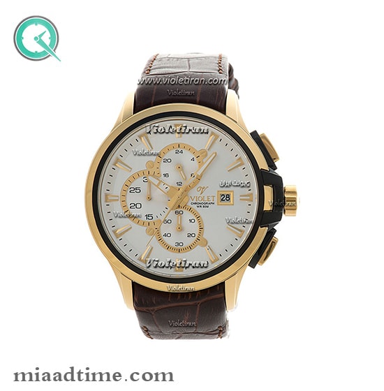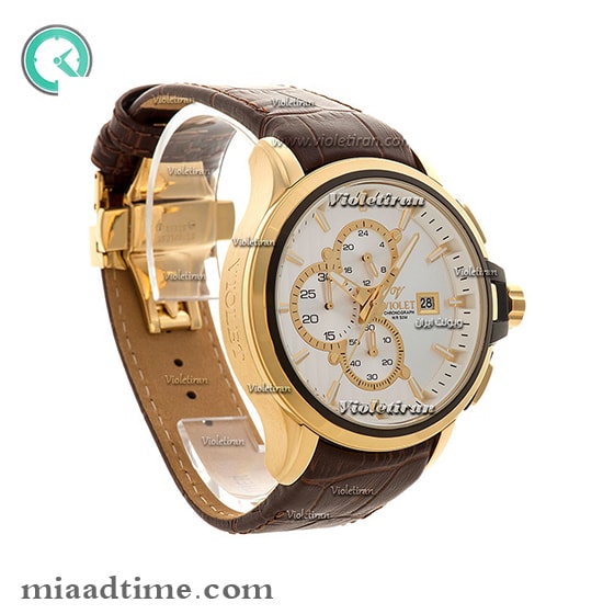 ساعت مچی ویولت مردانه کرنوگراف گرد چرمی طلایی صفحه سفید کد 0391/2G