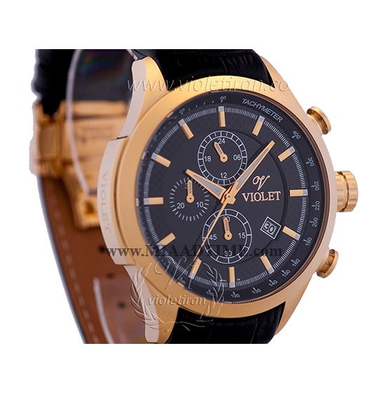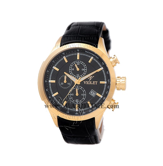 ساعت مچی ویولت مردانه کرنوگراف گرد چرمی طلایی صفحه مشکی مدل 0261/2