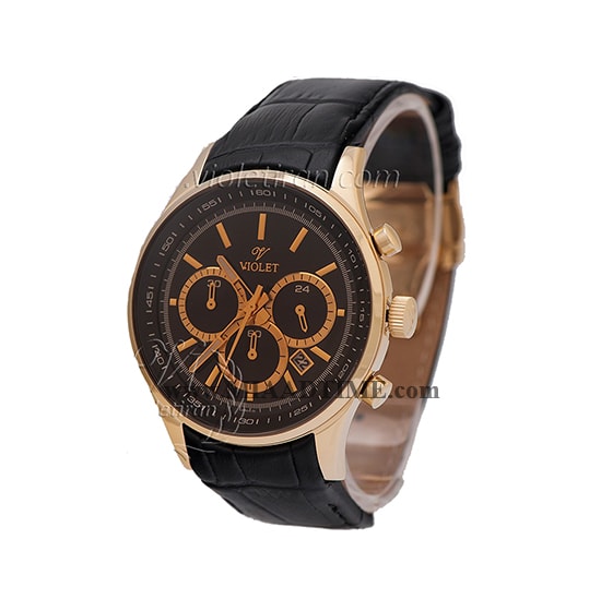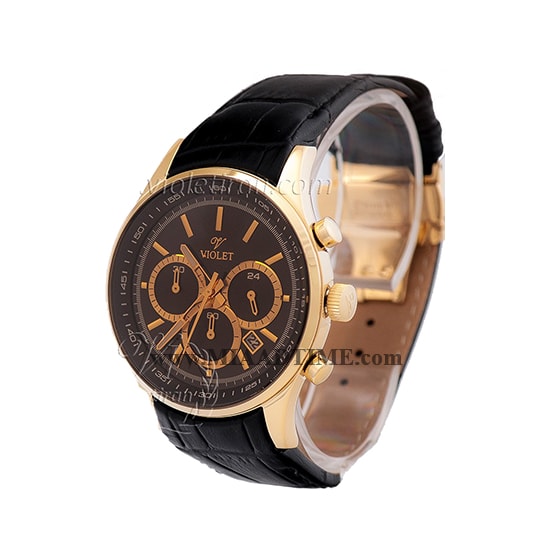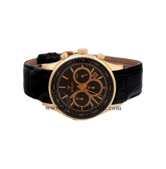 ساعت مچی ویولت مردانه کرنوگراف گرد چرمی طلایی صفحه مشکی کد0271/2G