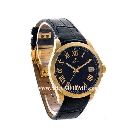 ساعت مچی ویولت مردانه کلاسیک گرد بند چرم طلایی صفحه سرمه ای مدل 0460/2G