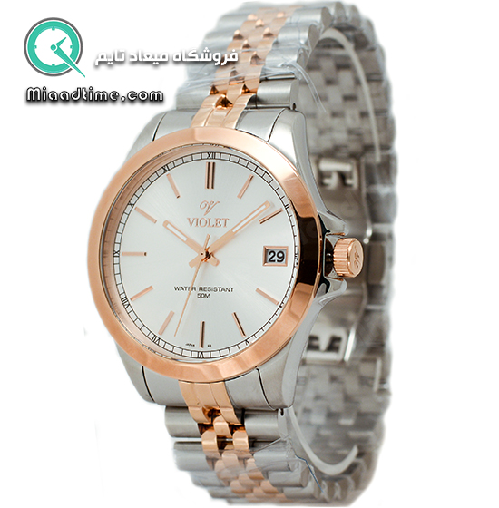 ساعت مچی ویولت مردانه کلاسیک گرد فلزی دورنگ رزگلد صفحه سفید مدل 0398/2G