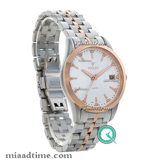 ساعت مچی ویولت، مردانه کلاسیک، گرد فلزی، دو رنگ رزگلد صفحه سفید | کد 0360/2G