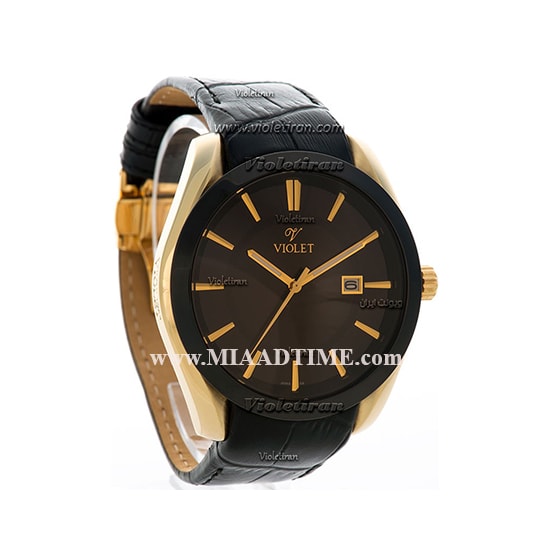 ساعت مچی ویولت مردانه کلاسیک گرد چرمی طلایی مشکی صفحه مشکی مدل 0442/2G