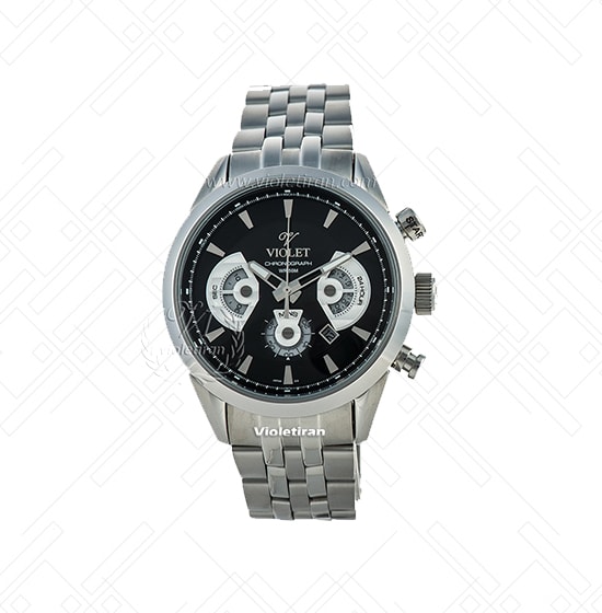 ساعت مچی ویولت، کرنوگراف مردانه، گرد فلزی، استیل صفحه مشکی مدل 0279G